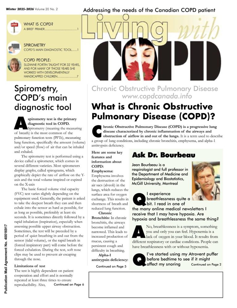 Canadian pulmonary rehab clinics can order multiple copies of the printed newsletter free-of-charge for distribution to attending COPD patients. To order bulk shipments - up to 20 copies per edition. Email: