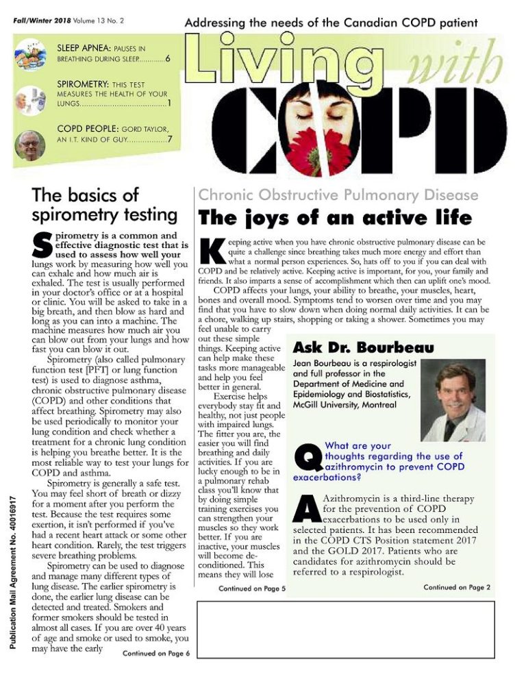 Canadian pulmonary rehab clinics can order multiple copies of the printed newsletter free-of-charge for distribution to attending COPD patients. To order bulk shipments - up to 20 copies per edition - Email: