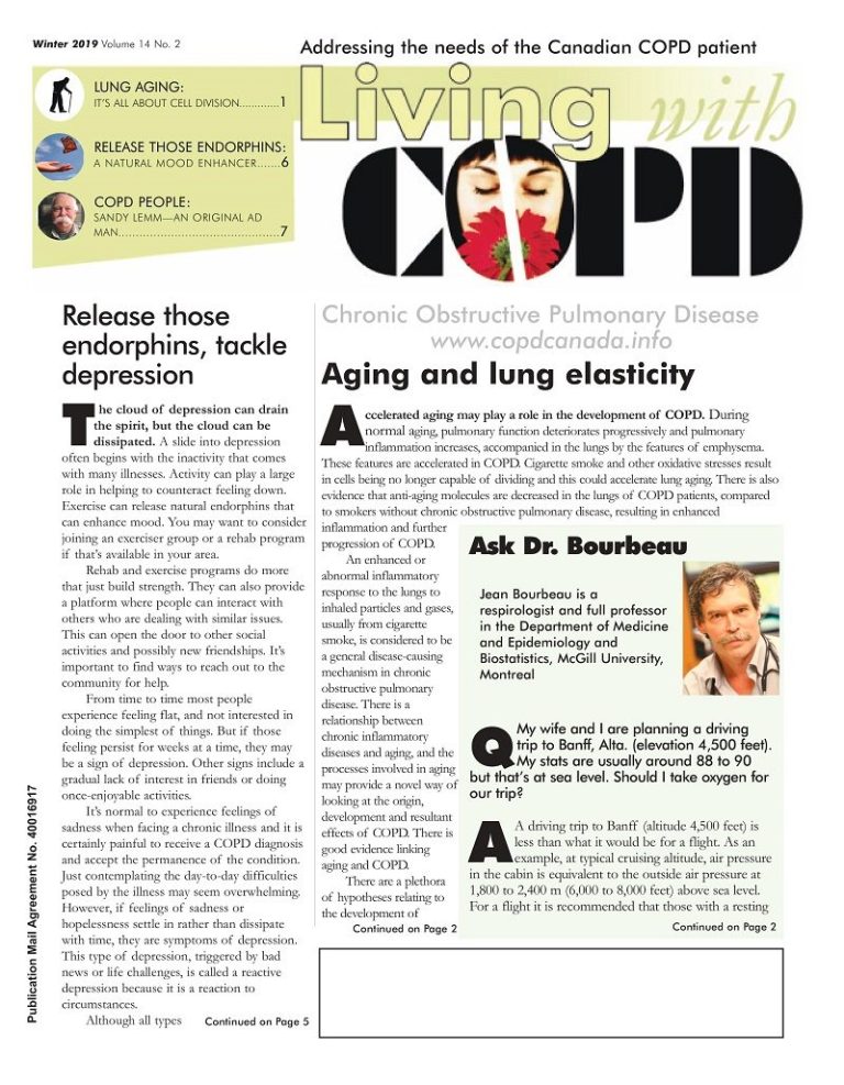 Canadian pulmonary rehab clinics can order multiple copies of the printed newsletter free-of-charge for distribution to attending COPD patients. To order bulk shipments - up to 20 copies per edition - Email: